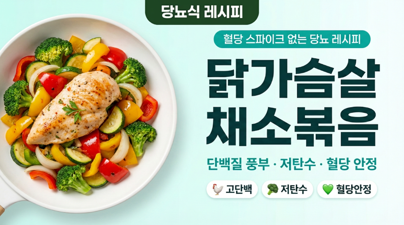 닭가슴살 채소볶음-닭가슴살+브로콜리+파프리카+애호박+양파로 만드는 250kcal 고단백(35g) 저탄수(12g) 볶음 요리-GI지수 낮고 크롬·비타민C 풍부해 혈당 안정 + 근육 유지 + 면역력 강화 한 번에 챙기는 든든한 한 끼 추천 대상자- 혈당 관리가 필요한 당뇨인- 근육량 유지가 필요한 분- 다이터트 중인 분- 간편하게 요리하고 싶은 분- 운동하는 당뇨인 혈당 걱정 줄이고 비교적 자유롭게 섭취가 가능한 당뇨식단입니다. 운동 전후에 드시면 근육 증대에 도움이 될 수 있습니다. 당뇨인의 아침 식사 대용 또는 식사 때 단백질용