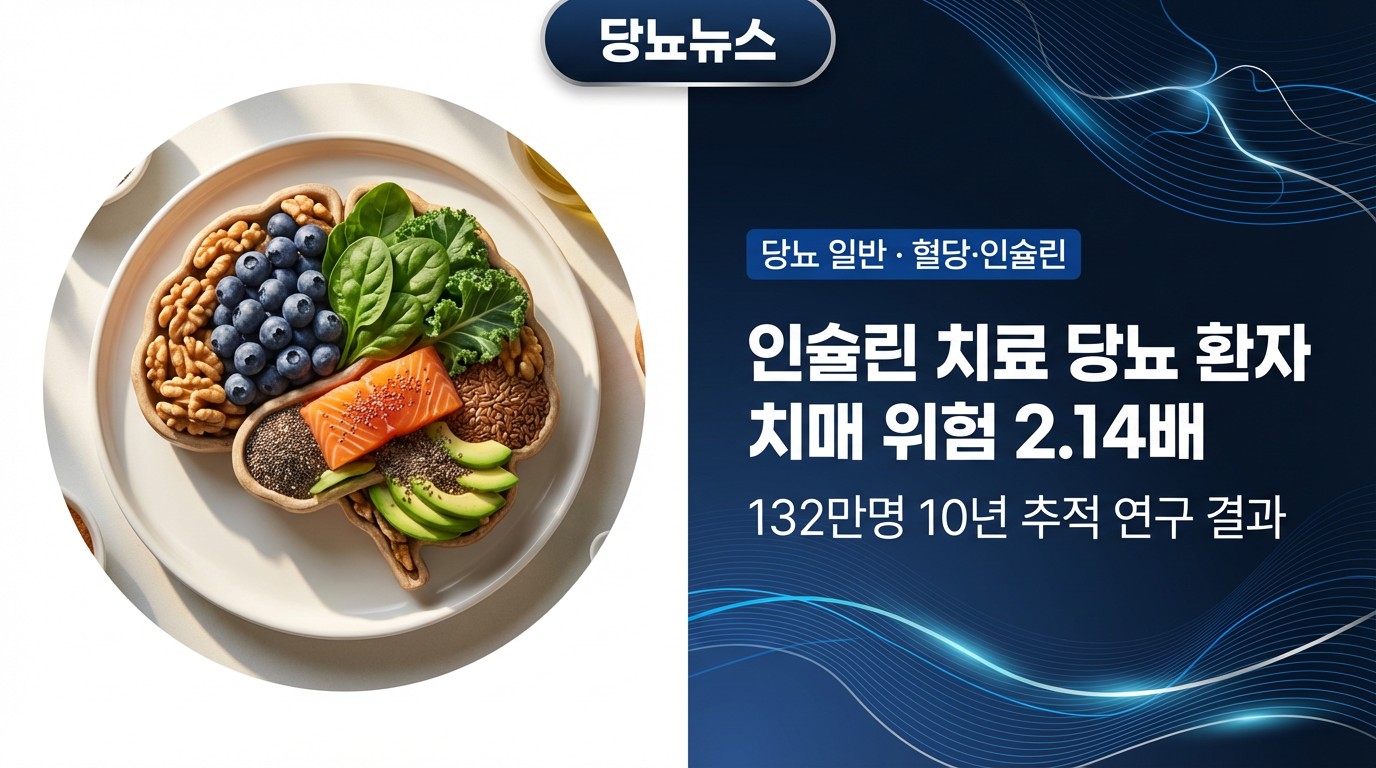 인슐린 치료 중인 당뇨병 환자, 치매 위험 2배 이상 높다혈당 관리를 위해 매일 인슐린 주사를 맞으며 생활하는 당뇨인이라면, 혈당 수치만큼이나 뇌 건강에도 신경이 쓰일 것이다. 최근 국내 대형 의료기관 연구팀이 발표한 대규모 추적 연구 결과는 이러한 우려가 단순한 걱정이 아님을 수치로 입증하였다. 당뇨병과 치매, 두 질환 사이의 연결고리가 점점 더 명확해지고 있는 것이다.132만 명, 10년의 추적이 밝혀낸 사실삼성서울병원 김재현 교수 연구팀은 40세 이상 성인 132만 명을 대상으로 10년에 걸친 장기 추적 분석을 실시하였다. 그