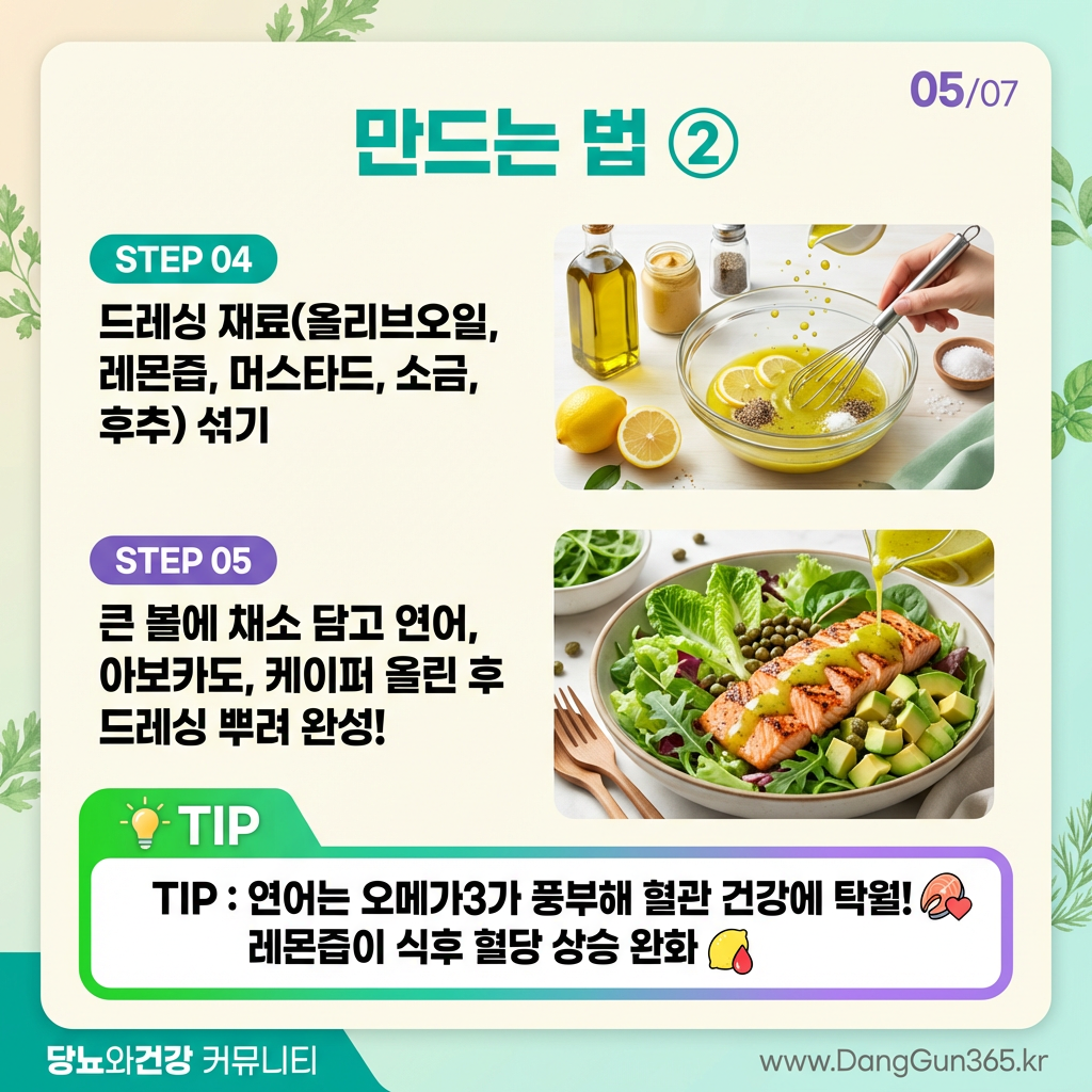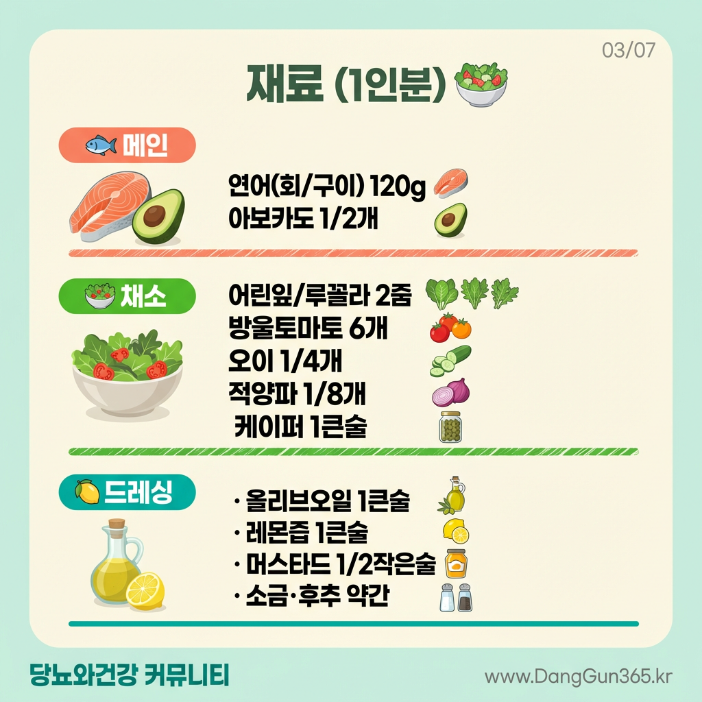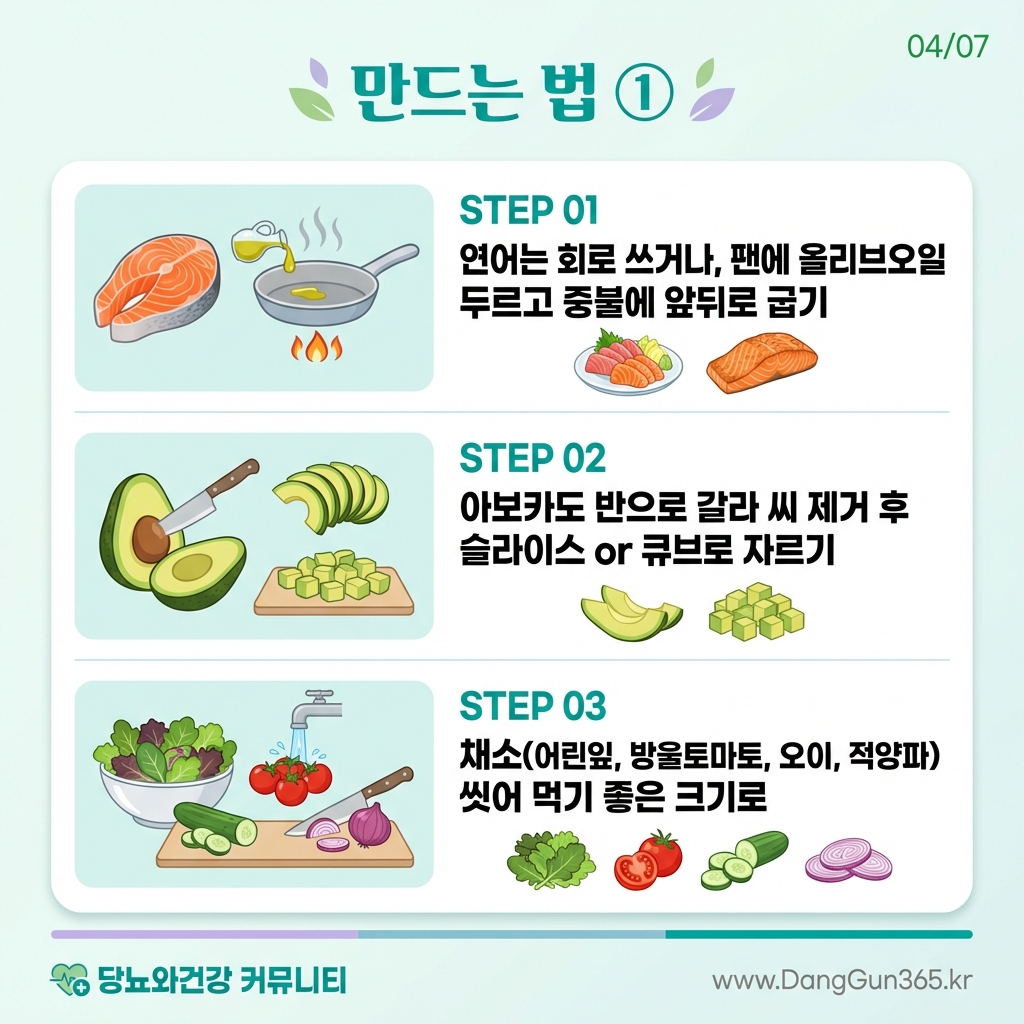 오메가3+불포화지방 풍부한 연어와 아보카도로 혈관 건강과 혈당 안정을 동시에 챙기는 당뇨 맞춤 샐러드