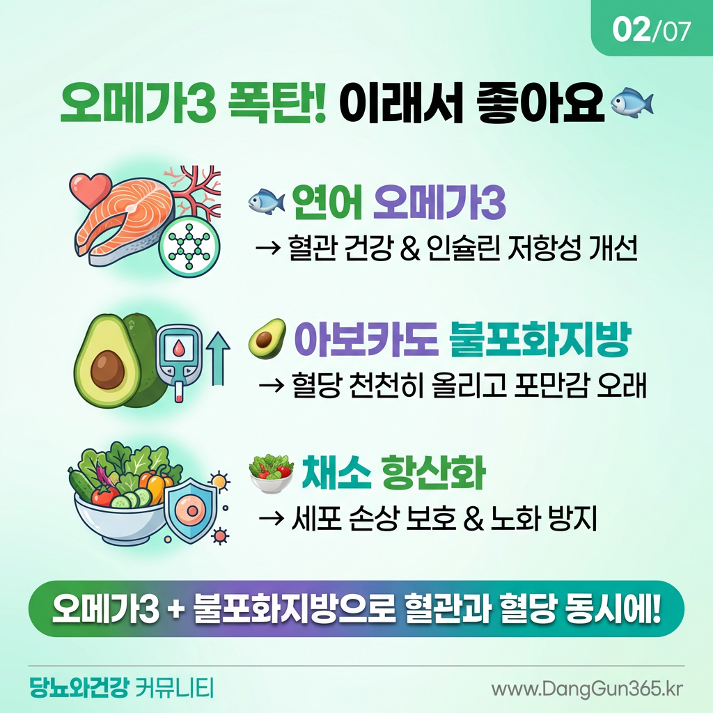 연어: 오메가3 → 혈관 건강 & 인슐린 저항성 개선