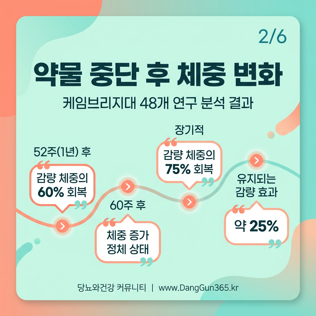 오젬픽·위고비 같은 체중 감량 약물을 중단하면 1년 뒤 감량 체중의 약 60%가 다시 늘어나는 것으로 나타났다. 케임브리지대 연구진이 48개 연구를 분석한 결과, 장기적으로는 감량 체중의 75%가 회복되고 25%만 유지되는 것으로 확인됐다.