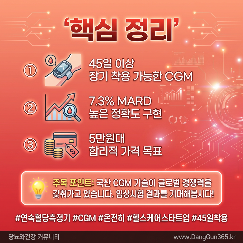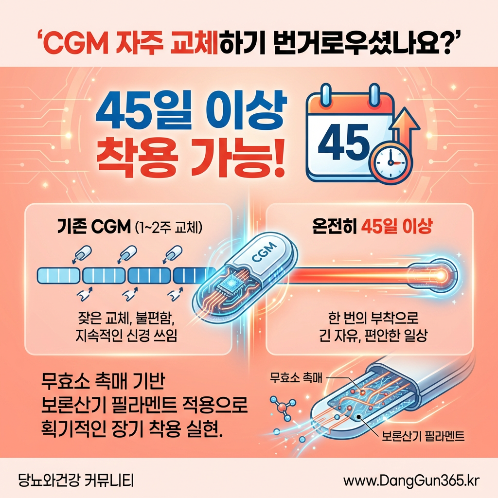 45일짜리 CGM이 현실화된다면, 당뇨 관리의 편의성과 접근성이 훨씬 나아질 있다.