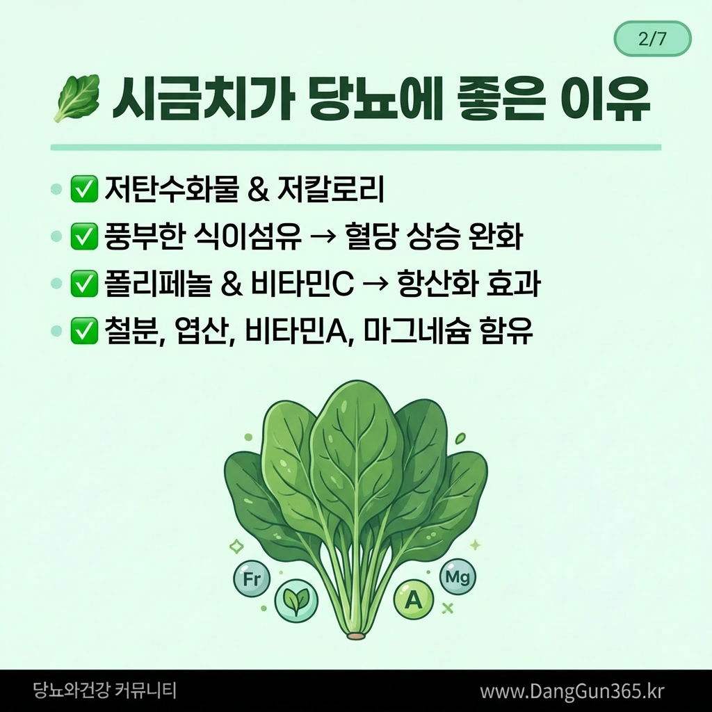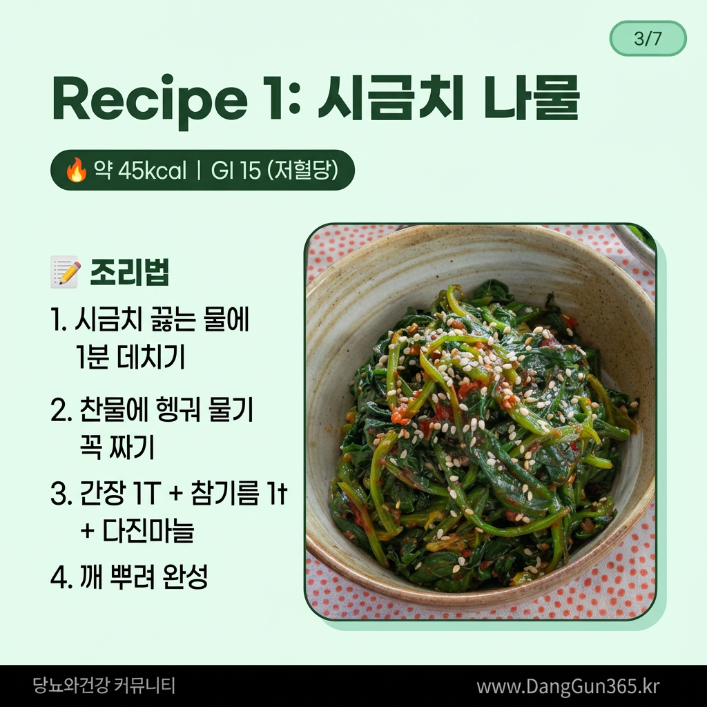 당뇨 환자를 위한 저탄수화물, 저혈당지수(GI) 시금치 요리를 소개합니다!