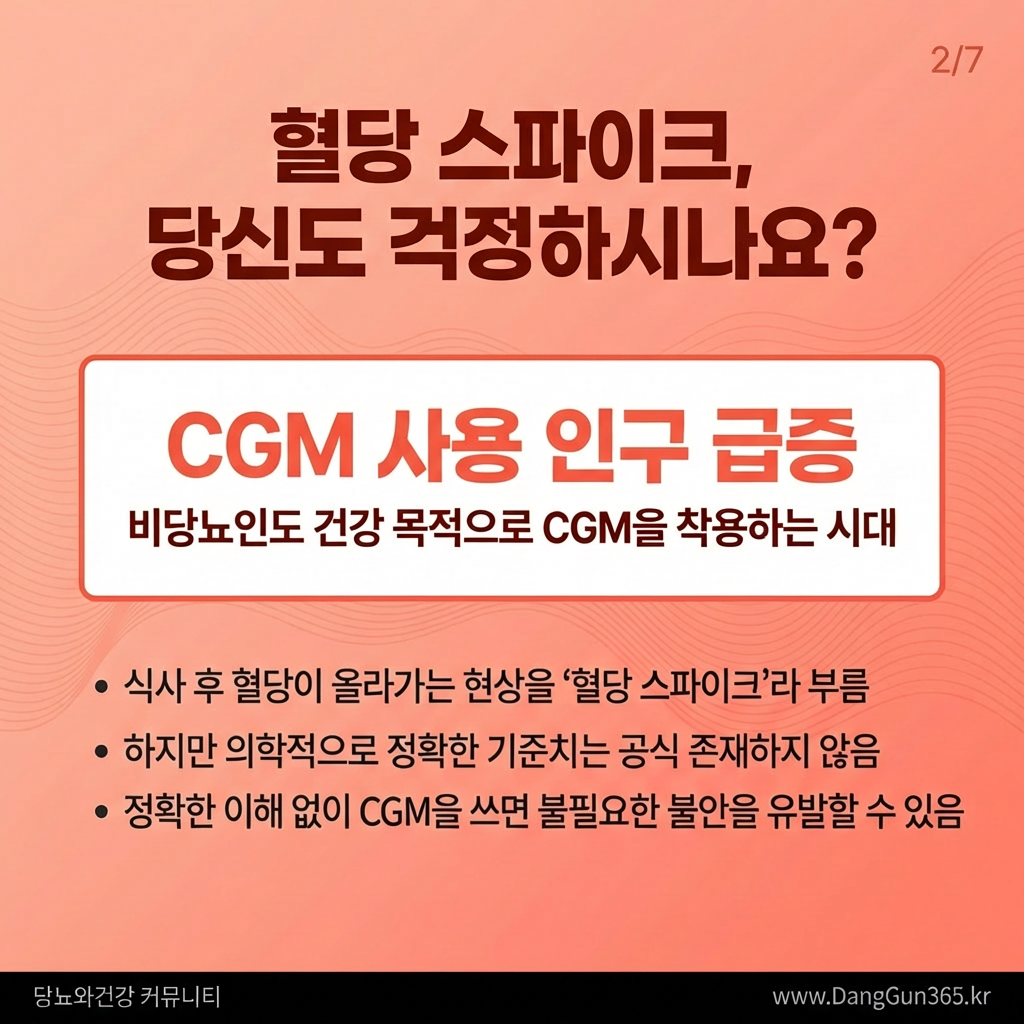 하지만 많은 사람들이 자신의 혈당 그래프를 보며 불안해합니다. "밥을 먹었더니 혈당이 치솟았어요. 저 당뇨인가요?" 과연 식후 혈당 상승은 모두 위험한 신호일까요? 정확한 의학적 지식 없이 CGM을 사용하는 것은 오히려 불필요한 건강 염려증을 유발할 수 있습니다.