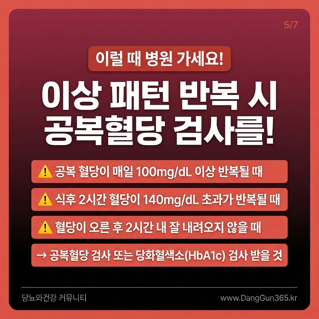 가장 중요한 지표는 '회복 속도'입니다. 건강한 사람도 떡볶이나 피자를 먹으면 혈당이 일시적으로 급등할 수 있습니다. 하지만 건강한 췌장은 인슐린을 적절히 분비하여 오른 혈당을 빠르게 정상 범위로 되돌려 놓습니다. 반면, 혈당이 오른 뒤 2시간이 지나도 잘 떨어지지 않고 고공행진을 한다면 이는 대사 기능에 문제가 있다는 신호일 수 있습니다.