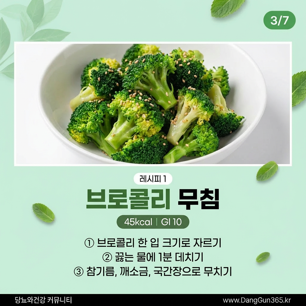 더 주목할 점은 당부하지수(GL)가 2에 불과하다는 것이다. 당부하지수는 혈당지수에 실제 섭취하는 탄수화물 양을 고려한 지표로, 10 이하면 매우 안전한 식품으로 평가된다. 브로콜리는 당뇨 환자가 안심하고 충분히 섭취할 수 있는 몇 안 되는 채소 중 하나인 셈이다.