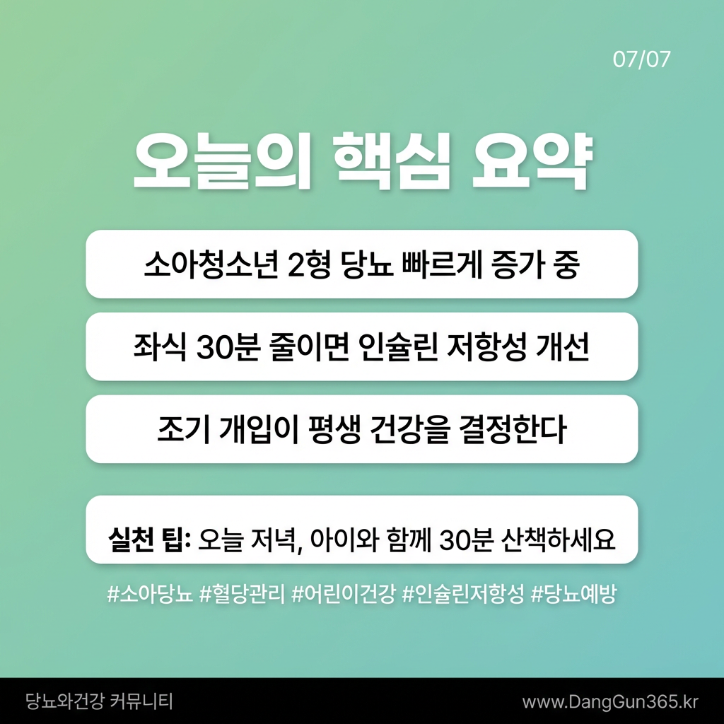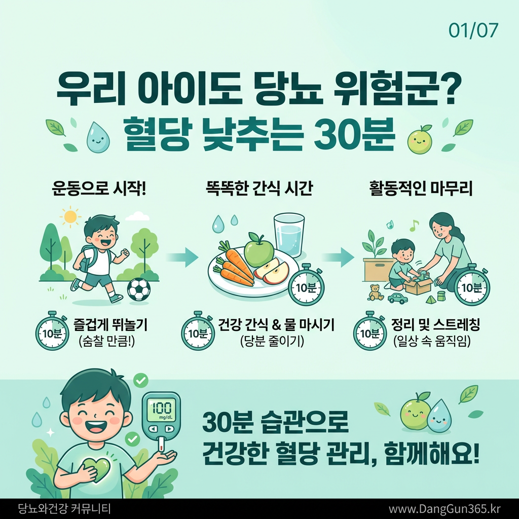 부모와 보호자들이 실천할 수 있는 방법은 생각보다 어렵지 않다. 하루 TV 및 스마트폰 사용 시간을 2시간 이내로 제한하고, 방과 후 야외 활동 시간을 최소 1회 이상 마련하는 것이 권장된다. 또한 균형 잡힌 저당 식단을 제공하고, 당뇨 가족력이 있는 아이의 경우 6개월마다 공복 혈당 검사를 시행하는 것이 바람직하다.