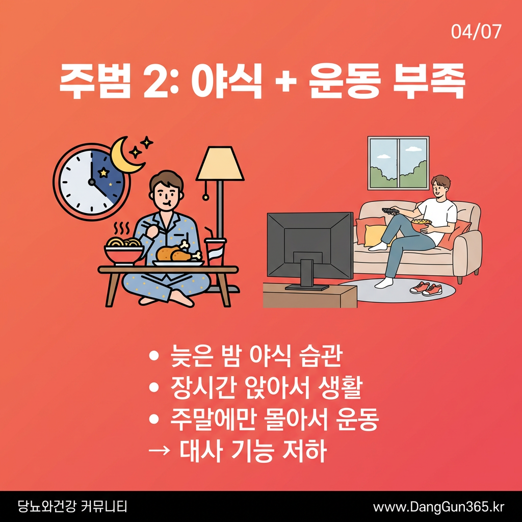 전문가들은 젊은 층의 당뇨병 증가 원인으로 생활 습관의 급격한 변화를 지목한다. 특히 과도한 탄수화물 섭취, 야식 문화, 운동 부족, 만성적인 스트레스 등이 복합적으로 작용하여 인슐린 저항성을 높이고 혈당 조절 능력을 악화시킨다.