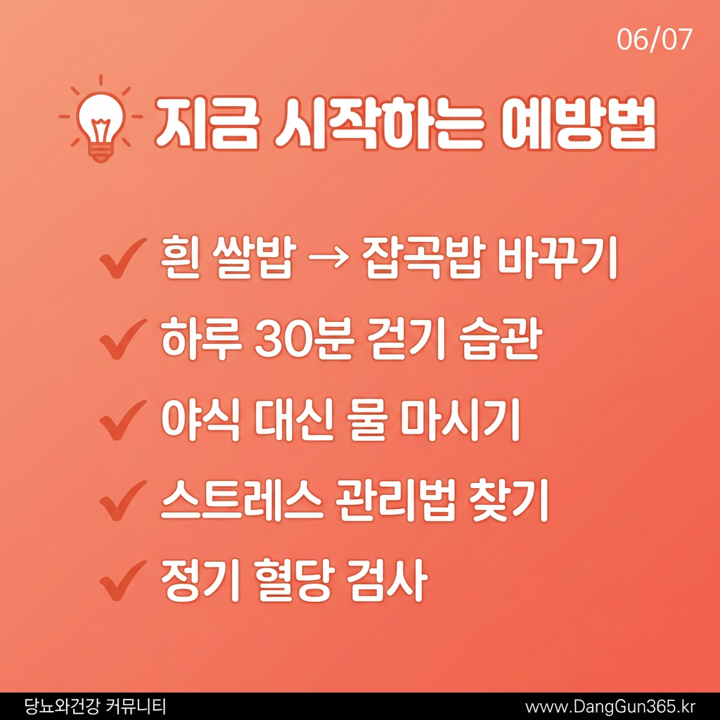 다행히 젊은 당뇨는 조기 발견과 생활 습관 교정을 통해 충분히 관리가 가능하다. 전문가들은 다음과 같은 예방 및 관리 방법을 권장한다: