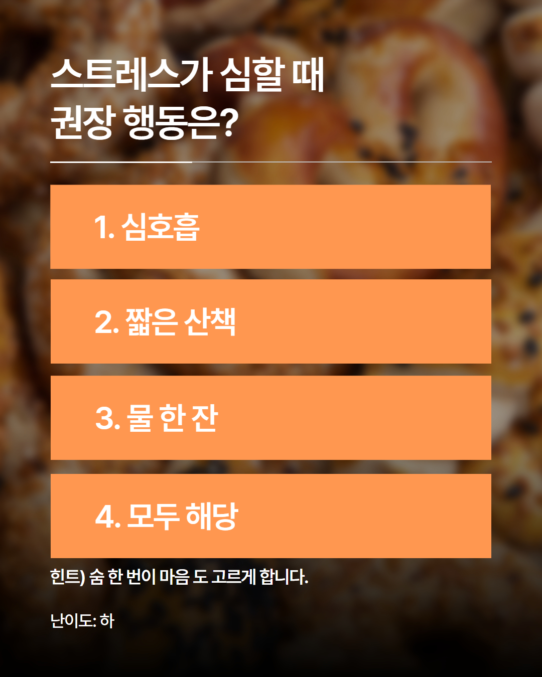 퀴즈 No2. 스트레스가 심할 때 권장 행동은?