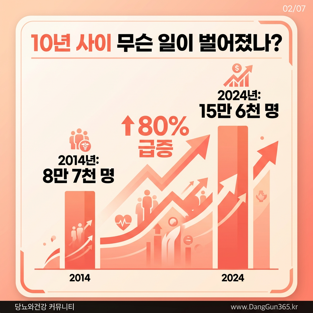 당뇨병은 더 이상 중·장년층만의 질환이 아니다. 건강보험 통계에 따르면 20·30대(이하 2030세대) 당뇨병 환자 수는 2014년 약 8만 7천 명에서 2024년 약 15만 6천 명으로, 불과 10년 사이에 약 80% 폭증한 것으로 나타났다. 전체 당뇨 환자 증가율을 크게 웃도는 수치로, 젊은 세대의 건강 이상 신호가 이미 현실로 나타나고 있다는 점에서 심각한 우려를 낳고 있다.