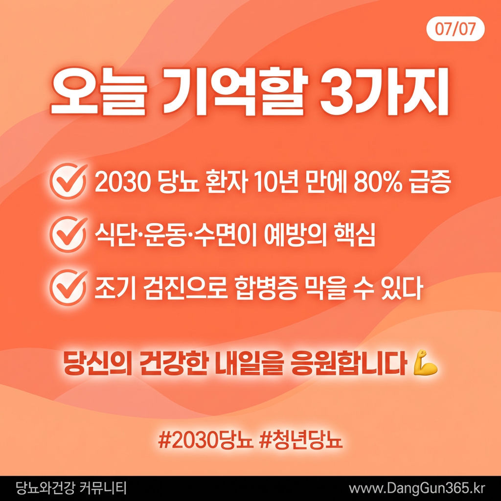 2030세대 당뇨 급증은 단순한 개인의 건강 문제가 아니다. 현대 사회의 구조적 문제—수면 부족을 조장하는 노동 환경, 가공식품 중심의 식품 공급 구조, 운동할 여유를 박탈하는 생활 방식—가 복합적으로 작용한 결과이다. 젊기 때문에 안심할 수 있다는 인식을 버리고, 지금 당장 자신의 생활 패턴을 점검해야 할 시점이다.