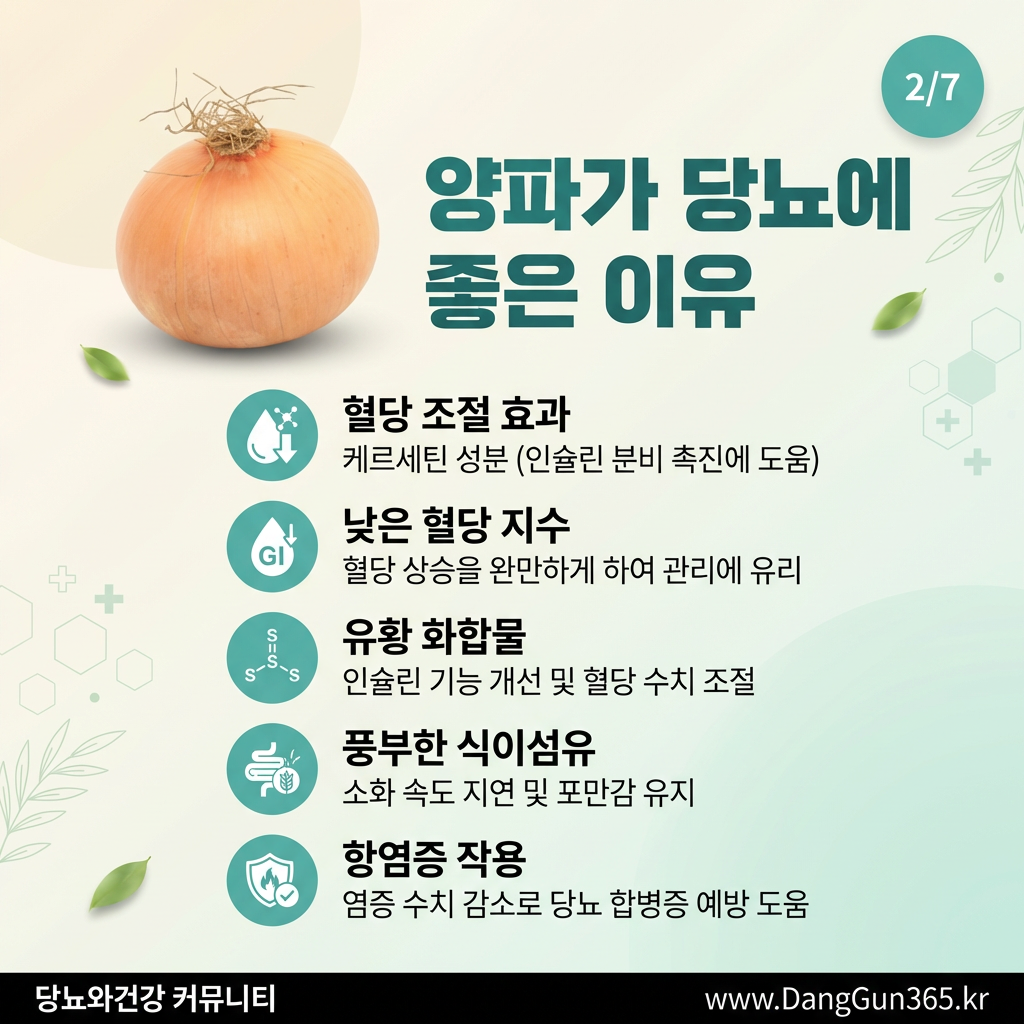 양파는 당뇨 관리에 매우 유익한 식품입니다. 과학적으로 입증된 주요 효능을 소개해드리겠습니다.