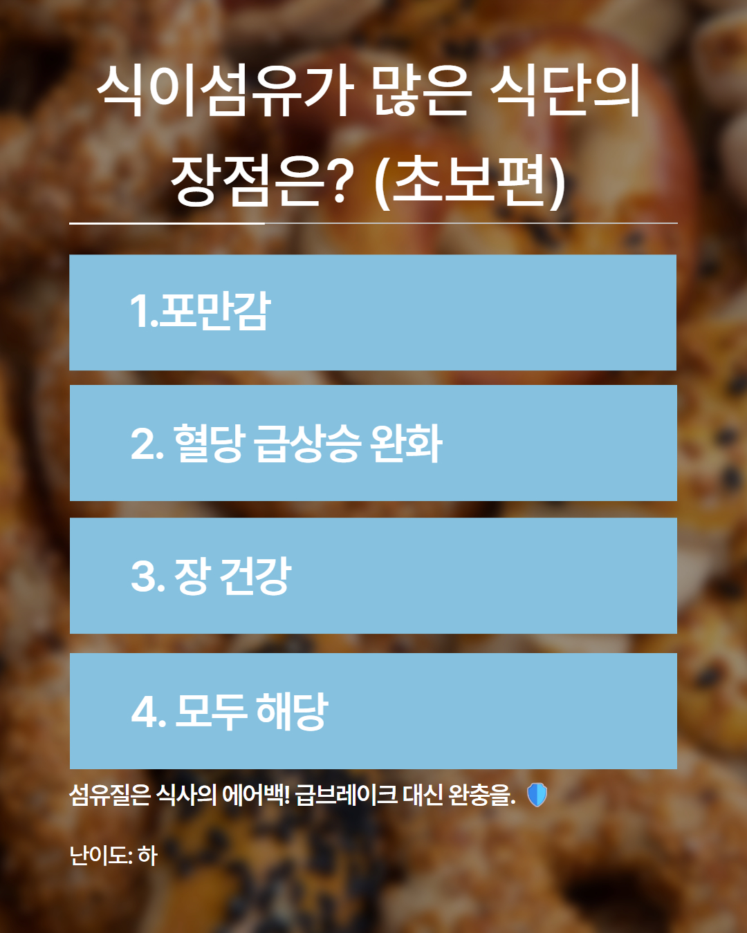 퀴즈 No4. 식이섬유가 많은 식단의 장점은?