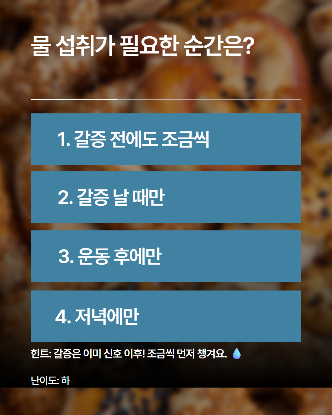 퀴즈 No15. 물 섭취가 필요한 순간은?