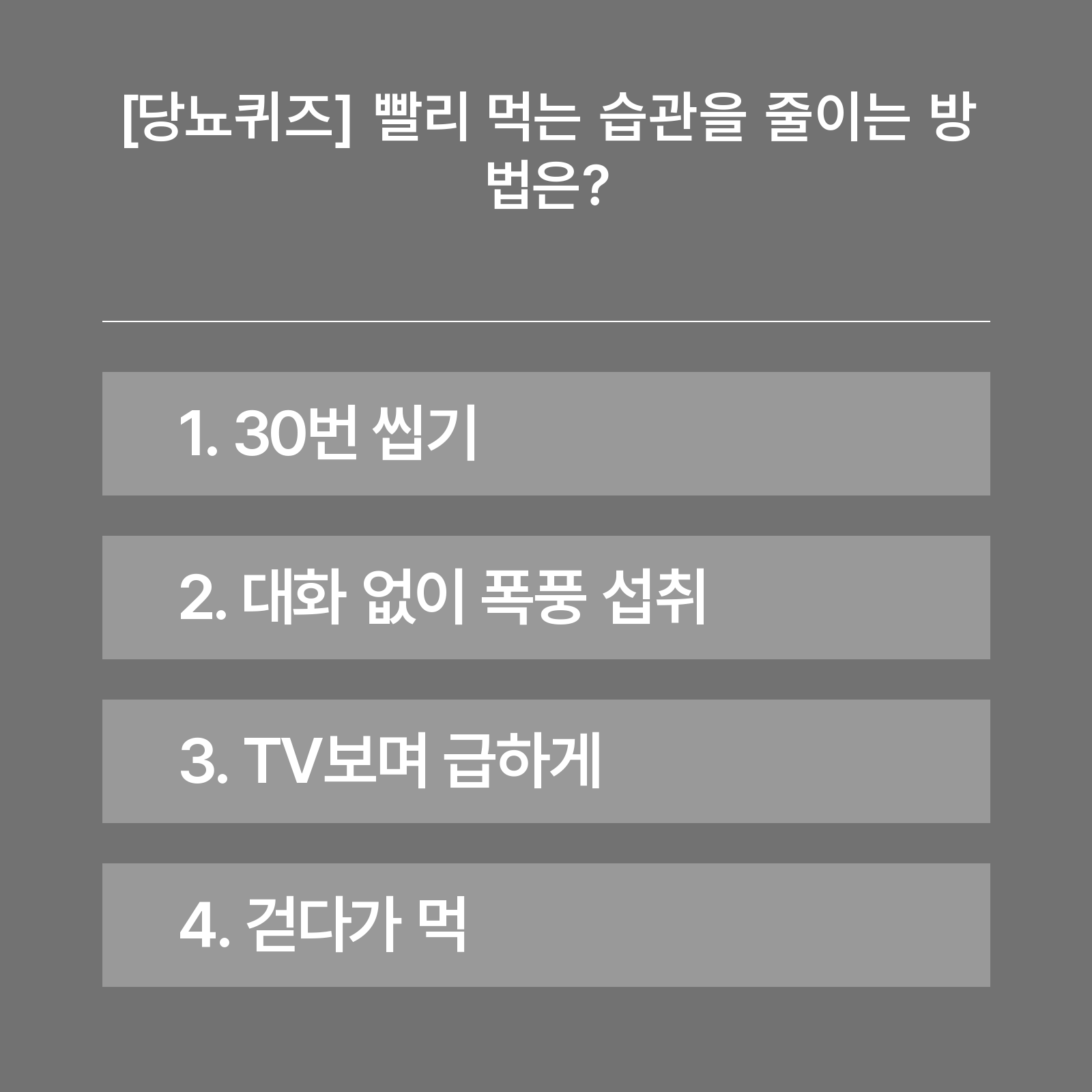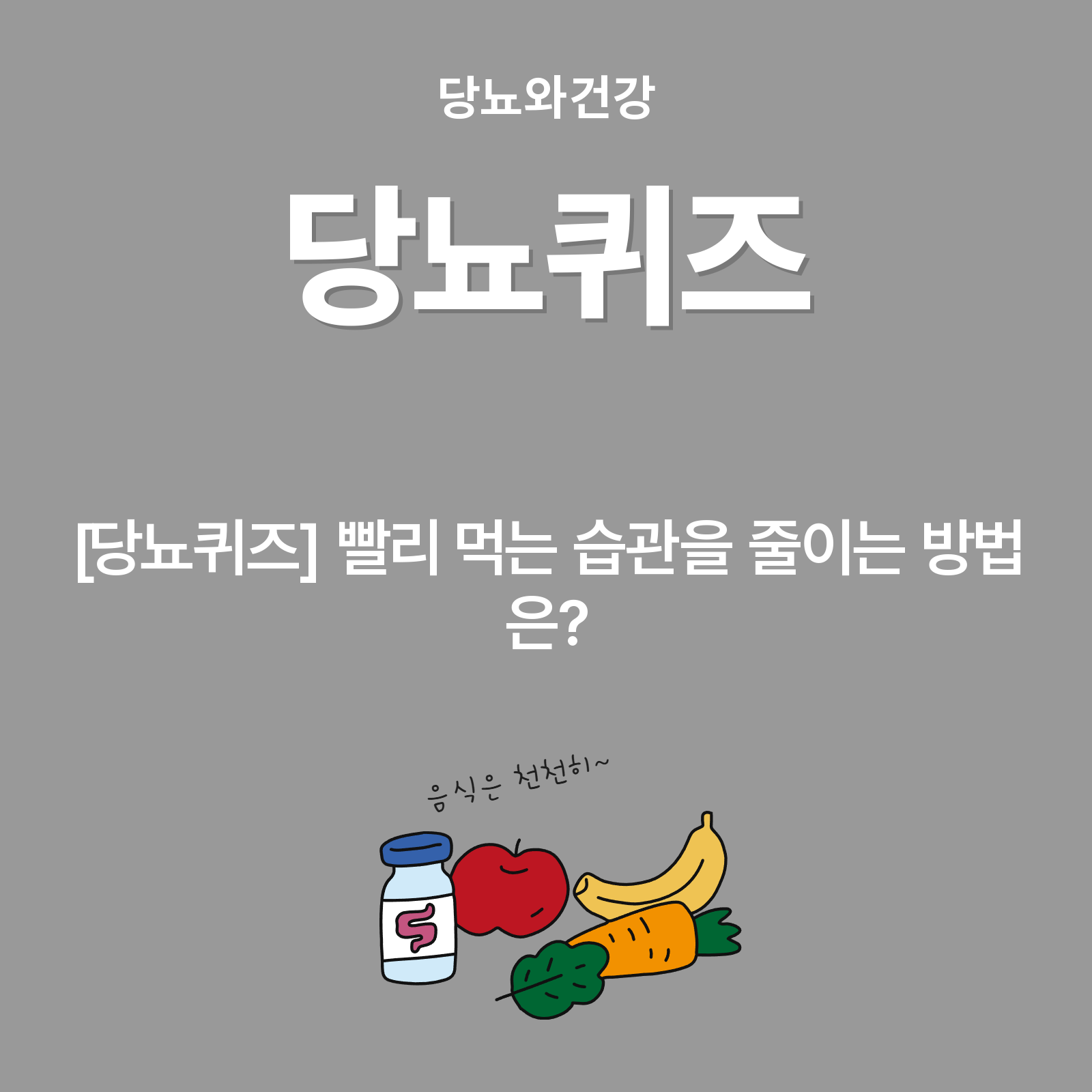 [당뇨퀴즈] 빨리 먹는 습관을 줄이는 방법은?