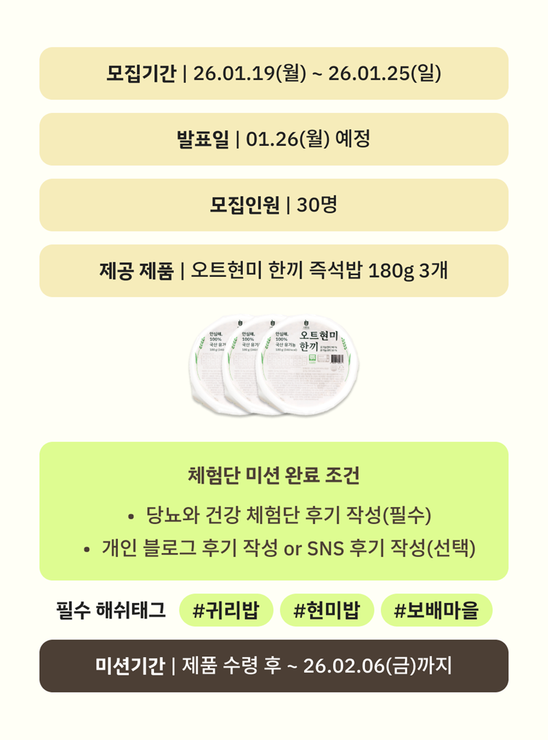 ✔ 체험단 모집 기간 : ~ 2026.1.25일