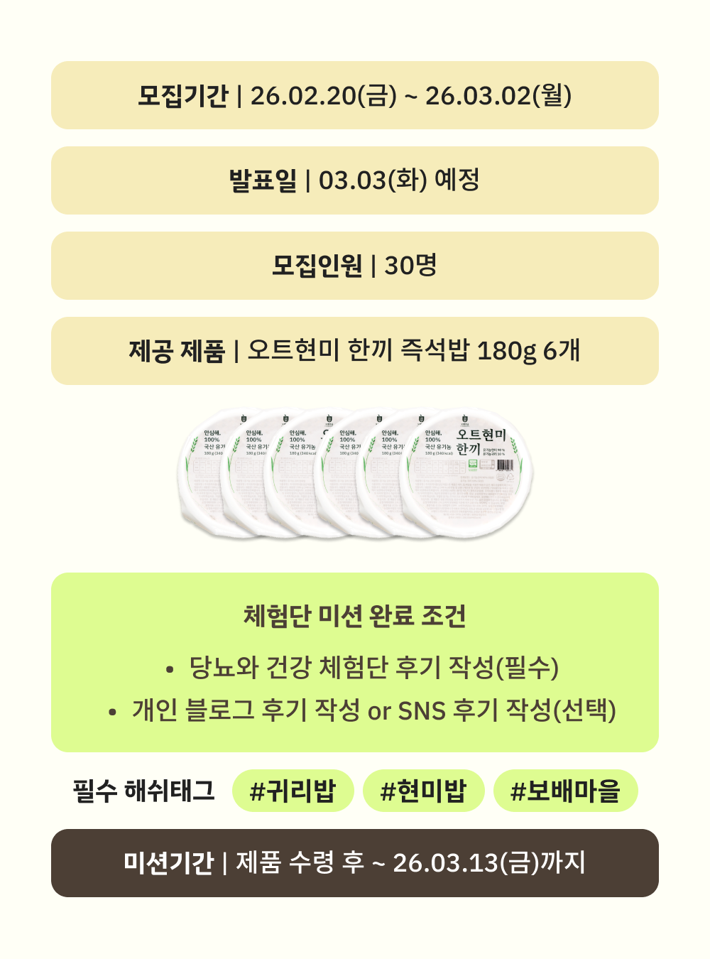 오트현미 한끼 즉석밥 당건 체험단 2차 모집