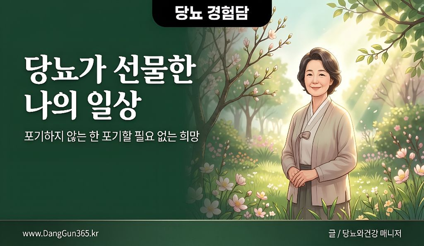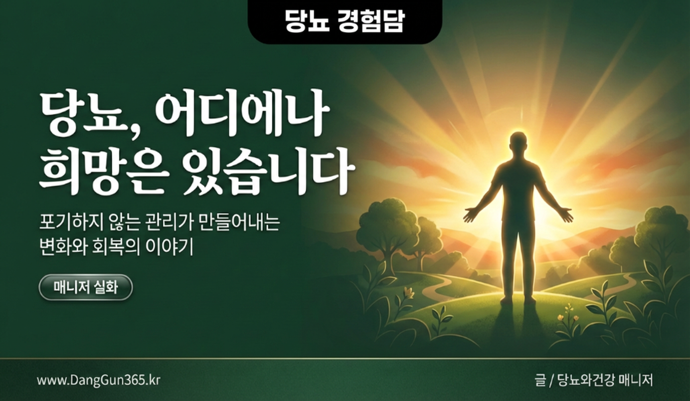 당뇨, 어디에나 희망은 있습니다.포기하지 않는 관리가 만들어내는 변화와 회복의 이야기.당뇨가 오면 많은 분들이 절망, 슬픔, 자신감 상실, 포기 등 힘들게 지내게 됩니다. 왜 나한테 당뇨가 온 거야. 내가 뭘 잘못했는데. 당뇨 관리를 한다고 생각조차도 할 수 없는 힘든 시기가 있습니다. 20년 전 나도 그런 과정을 거쳤습니다. 다행히도 많은 분들은 그 과정을 극복하고 관리를 하게 됩니다. 반면에 더 포기하고 고혈당에 방치되는 분들이 더 많다는 것이 현실입니다. 고혈당에 방치되면 합병증에 노출됩니다. 말초신경 합병증, 망막증, 족부