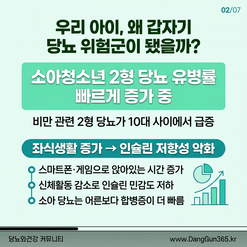 소아청소년 사이에서 비만 관련 2형 당뇨병 유병률이 빠르게 증가하고 있다. 전 세계적으로 아동·청소년의 신체활동 감소와 비만 인구 증가가 맞물리면서, 과거에는 성인병으로 분류되었던 2형 당뇨병이 이제 10대 연령층에서도 흔히 발견되는 질환으로 부상하고 있는 것이다.