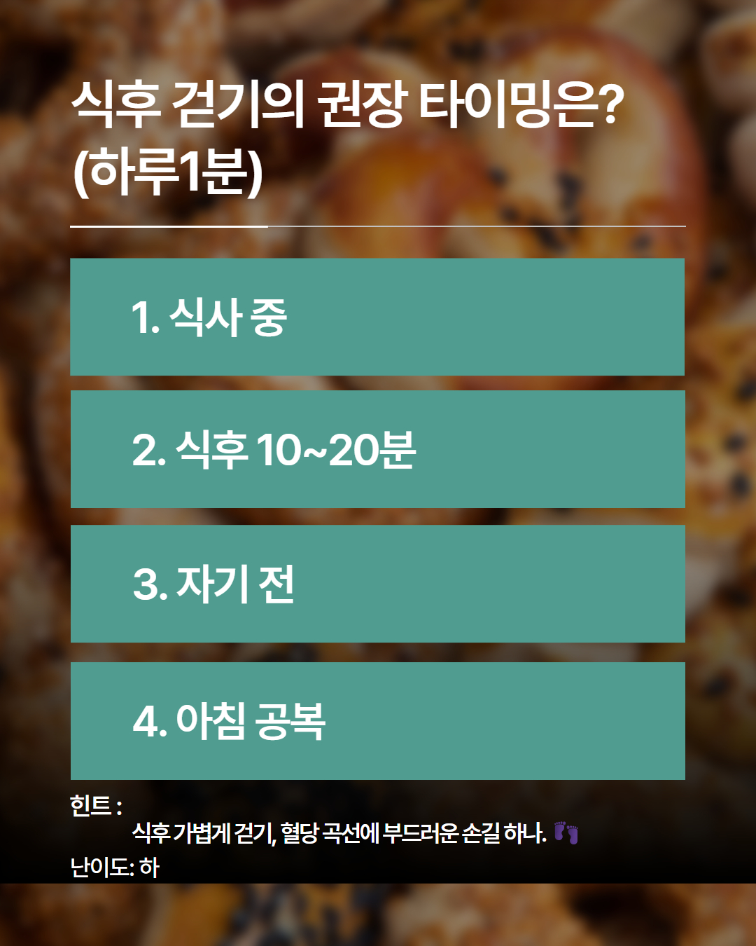 No8. 식후 걷기의 권장 타이밍은?(하루 1분)