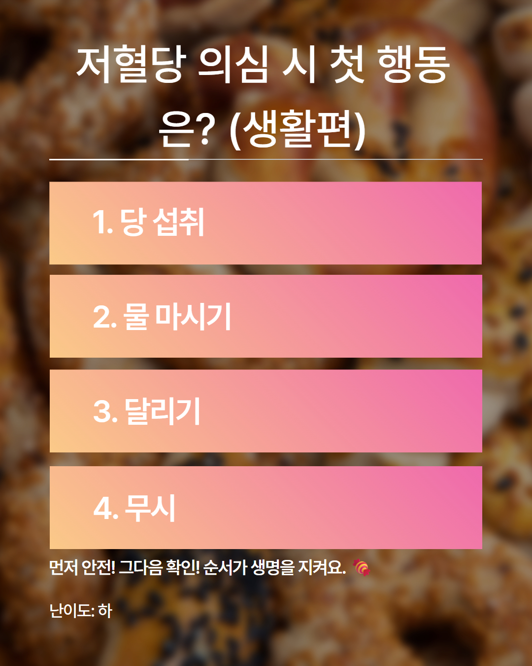 퀴즈 No10. 저혈당 의심 시 첫 행동은?