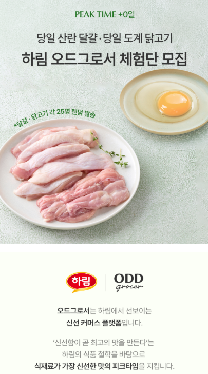 하림 오드그로서 <당일 도계 닭고기 / 당일 산란 달걀> 체험단 모집